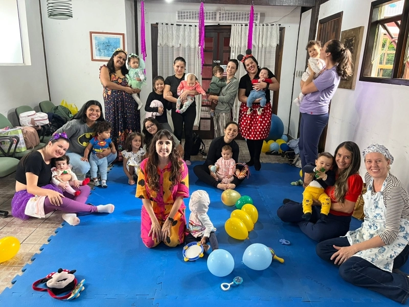 As atividades foram conduzidas pela professora Aryta Garcia, com o objetivo de fortalecer o vínculo entre mães e filhos, além de proporcionar um ambiente de convivência acolhedor. As mães participaram fantasiadas, compartilhando momentos de brincadeiras e trocas afetivas com seus bebês.
